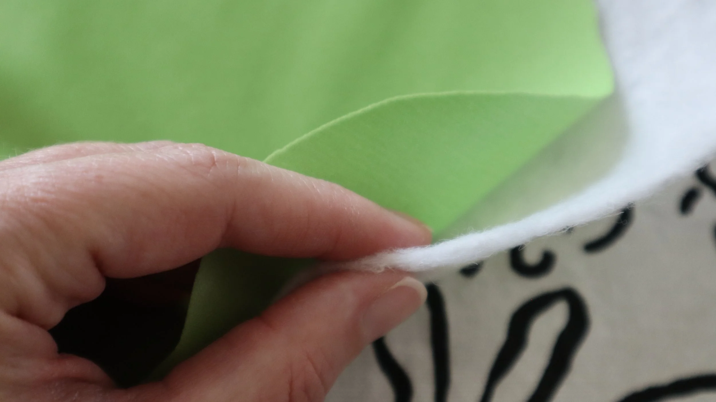 I also recommend a layer of thin batting. I used this needle-felted polyester from hobby lobby. It’s a little thinner in weight than a cotton batting, but you could use that instead if you prefer.